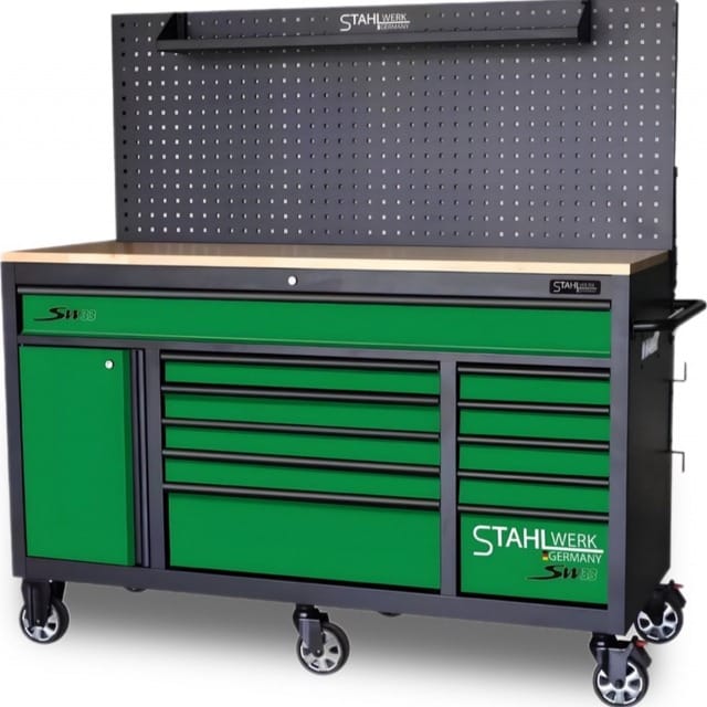 Stahlwerk SW33 Gereedschapswagen is ontwikkeld voor professionals die maximale capaciteit, overzicht en duurzaamheid eisen in hun werkplaats. Met 11 volledig gevulde kogelgelagerde laden en een totale inhoud van 1050 gereedschappen biedt deze wagen een complete mobiele werkplaatsoplossing. Hierdoor beschikt u altijd over het juiste gereedschap binnen handbereik, zonder tijd te verliezen aan zoeken of herorganiseren.